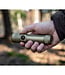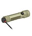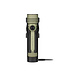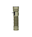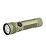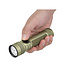 Das Gehäuse besteht aus Olights Aluminiumlegierung OAL, die etwa doppelt so stark und kratzfester als häufig verwendetes 6061 ist. Die grüne Grundfarbe bleibt selbst bei tiefen Kratzern erhalten. Der gummierte Griff sorgt für Komfort und sicheren Halt bei Nässe und Kälte.