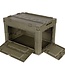 This collapsible plastic box with a capacity of 60 litres in olive green is the ideal storage and transport crate for emergency kits, camping gear, tools, and supplies. The sturdy military crate is made from durable polypropylene and folds flat to just 10.5 cm in height for space-saving storage. The army box features foldable side walls, a two-part integrated hinged lid, a front flap and a side flap – both equipped with four locking sliders and a locking eyelet for extra security.