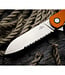 Its broad, partly serrated sheepsfoot blade is perfect for rescue and daily use. The bright orange G10 handle is lightweight, highly durable, and offers excellent grip in all conditions. Read more..